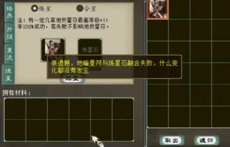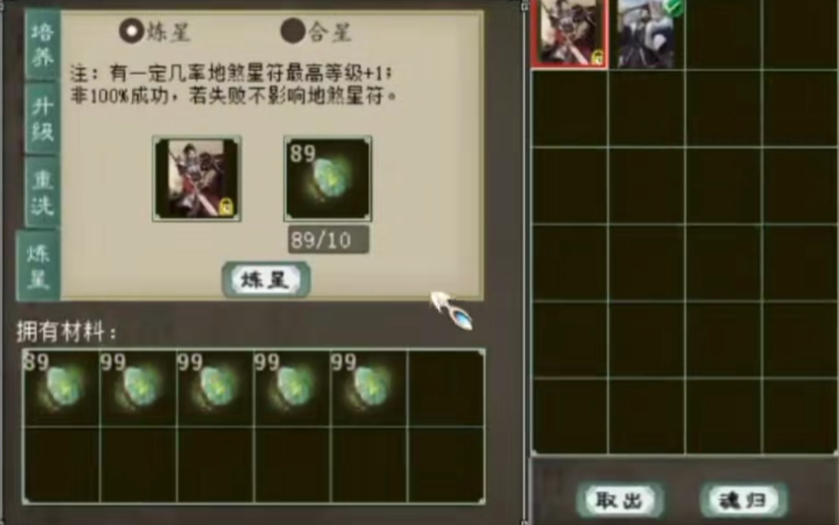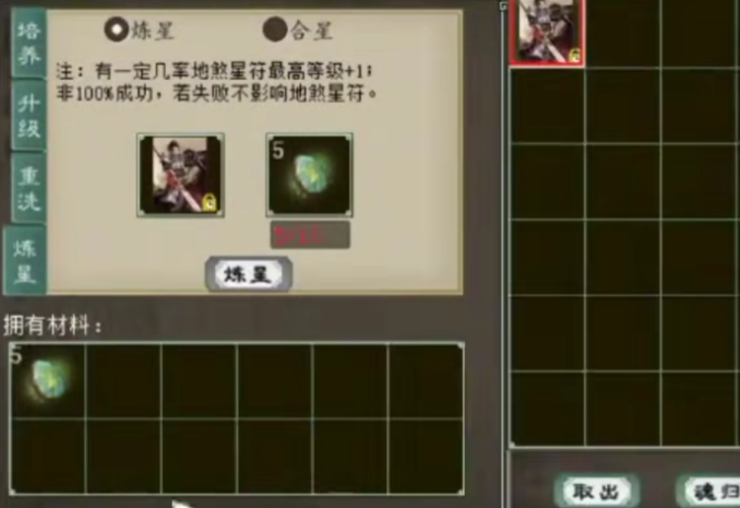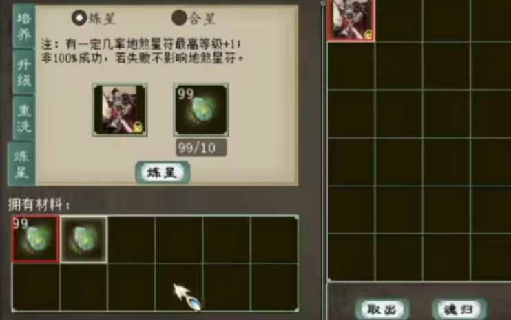 老铁手上有张大话西游2风法赤马星卡,但目前等级有些低,于是今天就买了五组炼星石,准备给它提升一波,咱们来看看结果如何? |