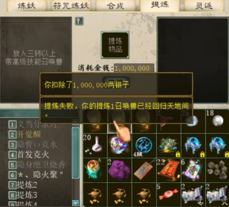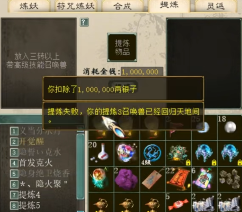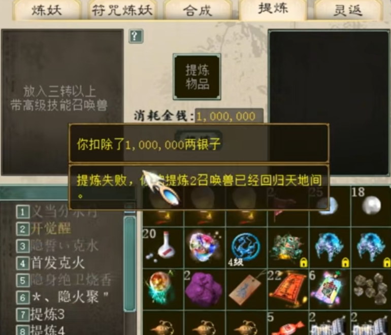 老铁准备了六只大话西游2召唤兽提炼,之前有很多兄弟的成功率都不到30%,而他这次,能不能把前人的红利给吃满呢? |