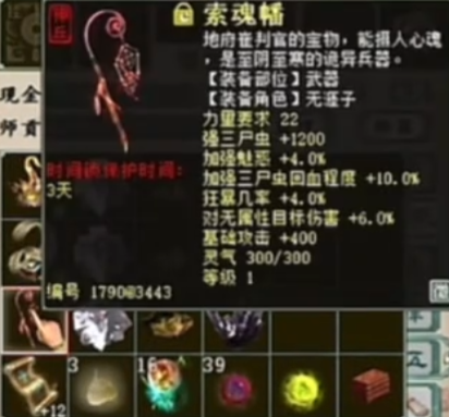 老铁在阁子上购买了三件大话西游2神兵,其中有两把双回和一顶帽子,这次要求不高,有一把双回能上四就行!