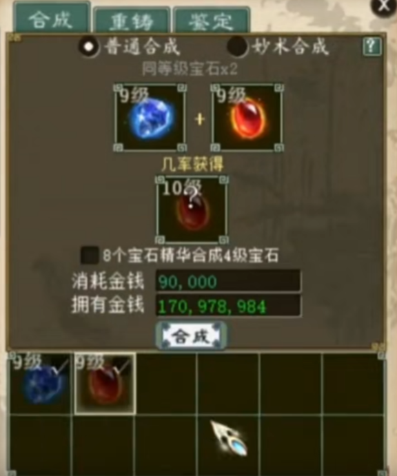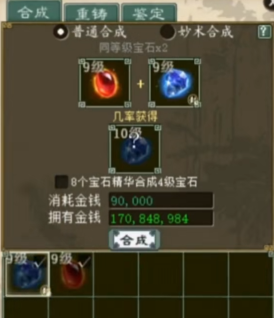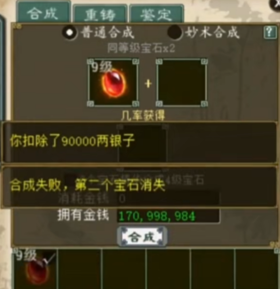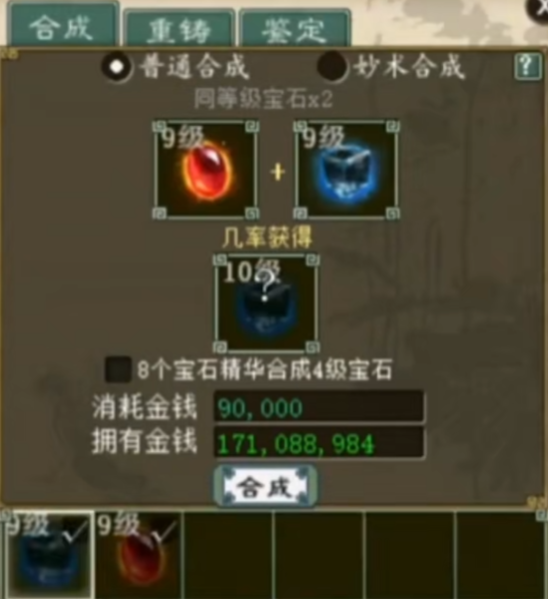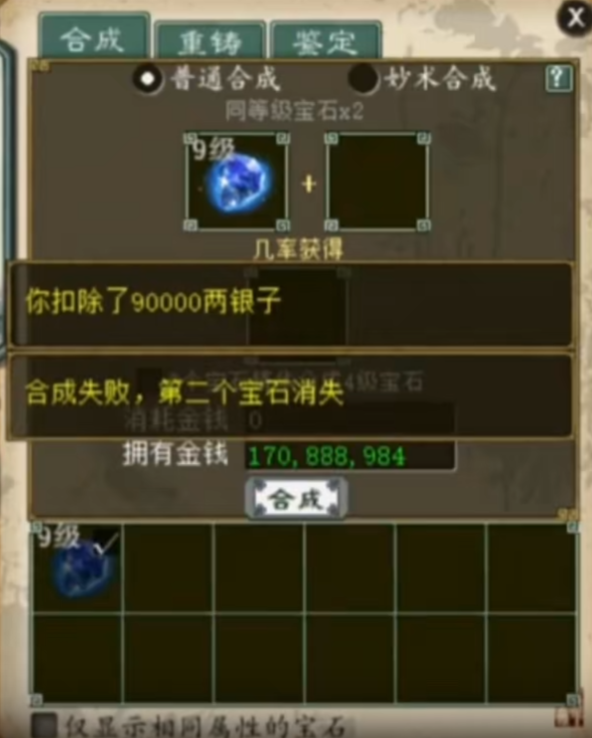 合成一颗十级大话西游2奇异石,一般需要多少颗9级宝石呢?今天这位大佬就用九级石头直接开砸,这碎一次可就是一万多呀,看看他几次能成功! |