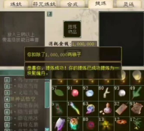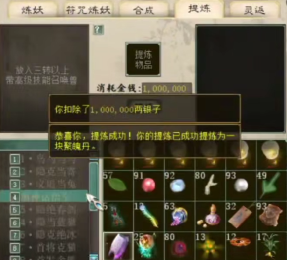 什么情况,这都好多天没有人提炼了,今天这位兄弟一口气提炼六只大话西游2召唤兽,没想到居然运气爆棚,全部都成功了?