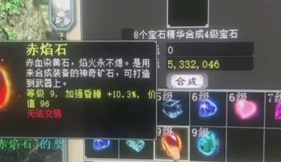 无法交易的九级宝石,而且还是两颗?这要多好的手气才能合出来啊,既然上天如此安排,那么索性再搏一把,希望表哥能让我顺利上十级! 价值不算低了,最重要的是无法交易,能拥有这种宝贝的号,基本都是超级福星号啦,平时做任务也一定几率频频吧? [编辑:093eunhf]