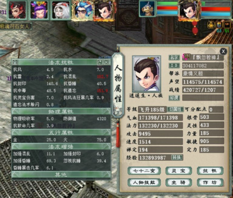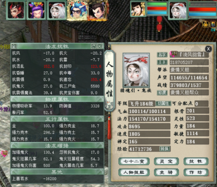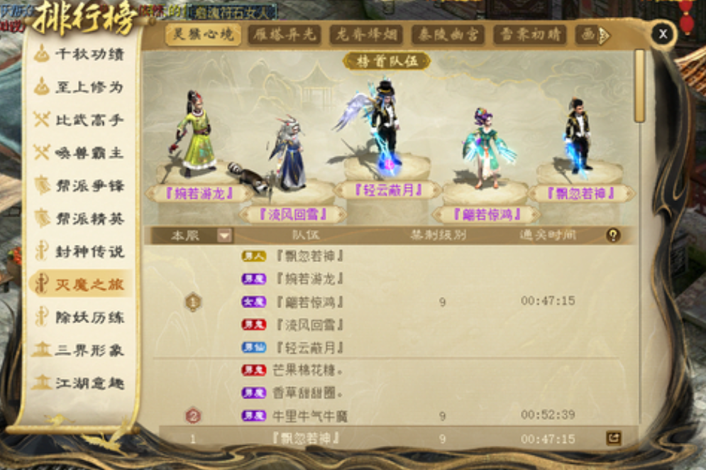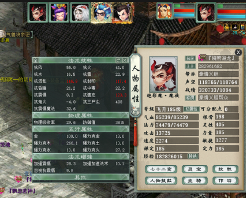 大话西游2某服灭魔之旅榜首队伍 睡杀打造属性展示
