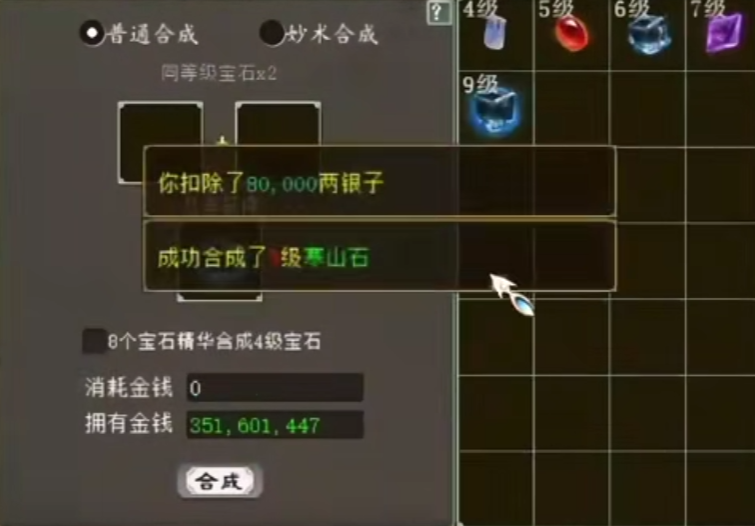 幸好合成了十级,虽然没有奇异石,但总算不亏吧,同时也不建议如此搏命,万一失败就太心疼了! [编辑:029diwj]