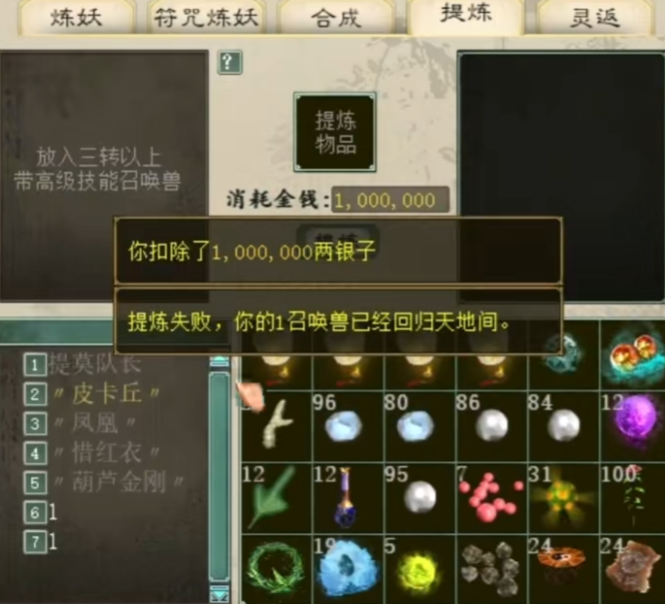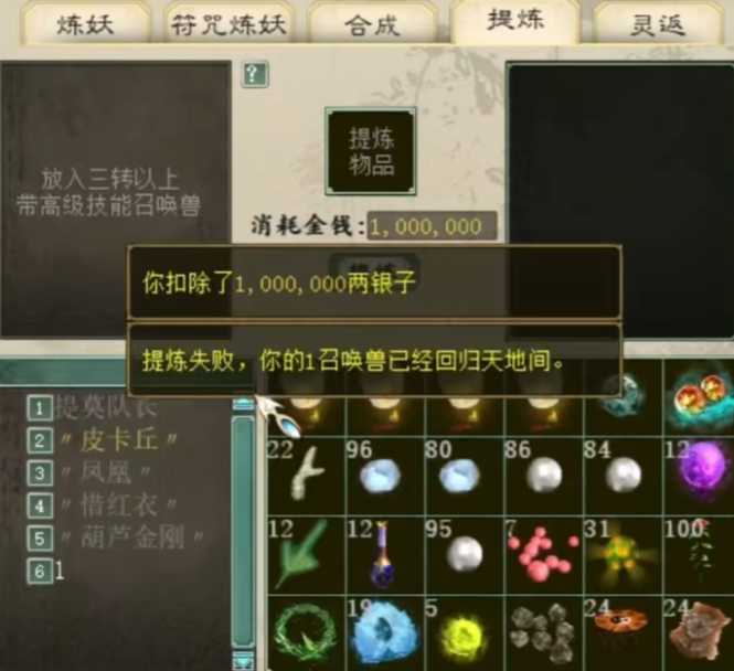 老铁买了九只大话西游2召唤兽,今天准备一口气全部提炼,但这剧情嘛......真可谓是跌宕起伏啊!