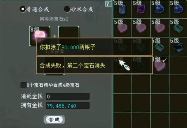 十组宝石精华,最后就合出一颗6级和一颗7级,不但没赚,还赔进去一块8级宝石...... [编辑:067ewf]