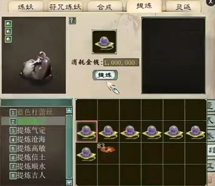 提炼圈的兄弟简直越来越狠了,十只、二十只都满足不了胃口,今天这位五开玩家准备了三十七只大话西游2宝宝,咱们看看有多少可以聚魄成丹? |