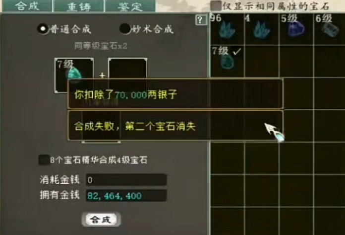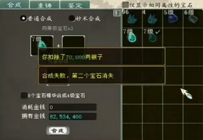 损失有点惨啊!建议大家合宝石千万别上头,这下真的亏大了,连做任务都受影响了!