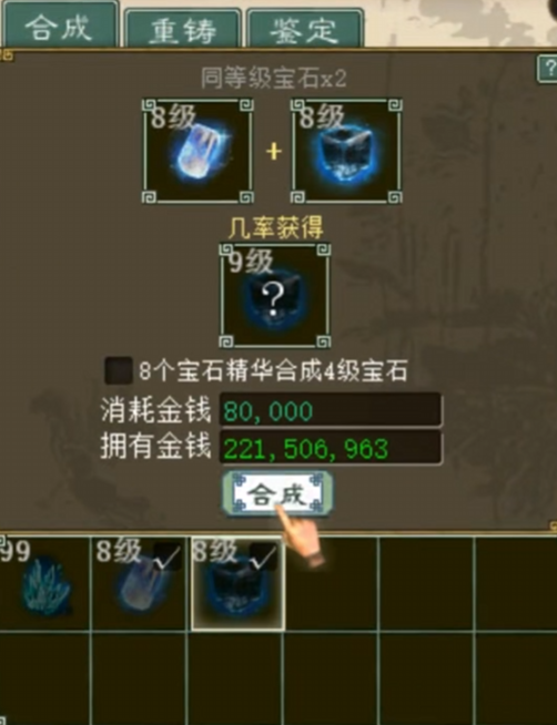 追梦大话西游2九级奇异石,先从两颗八级宝石开始,如果顺利就皆大欢喜,如果不顺嘛,咱们还留有后手,一起来看! 一块价值105的8级宝石