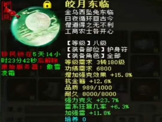 回归玩家刚刚入手了一枚大话西游2神兵平秒炮,目前的属性为克火351、强雷91、忽视雷56,来看看他的装备搭配是否合格! 以上就是这位克火平秒炮的主要装备了,算是投入不高,性价比还不错吧,兄弟们觉得是五级神兵炮好用呢,还是十六级武器好用? [编辑:987d82r]