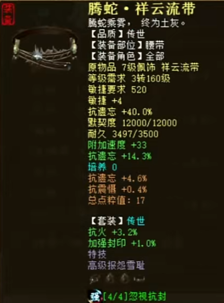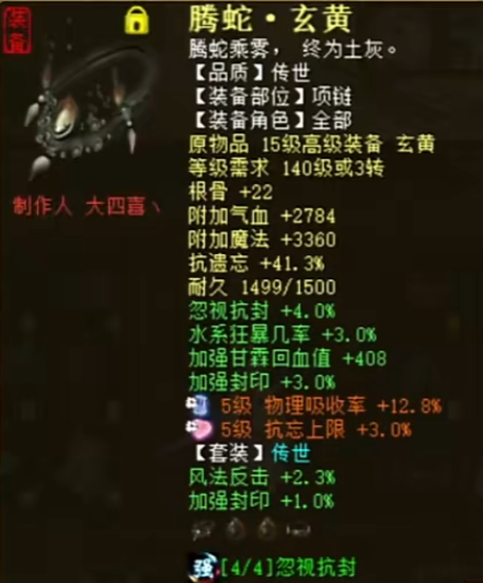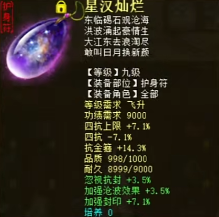 下面这个大话西游2女人号,据说专为对付狂暴十六星而打造,她的战斗定位以冰控为主,先来看看整体装备搭配,感受一下“地煞克星”的威力! 护身选择挺有意思,黄字带了四抗上限和抗金箍,非常有针对性,而且整套装备看起来投入并不高,主要就是用来杀狂暴16星的,各位兄弟觉得如何呢? [编辑:39do]