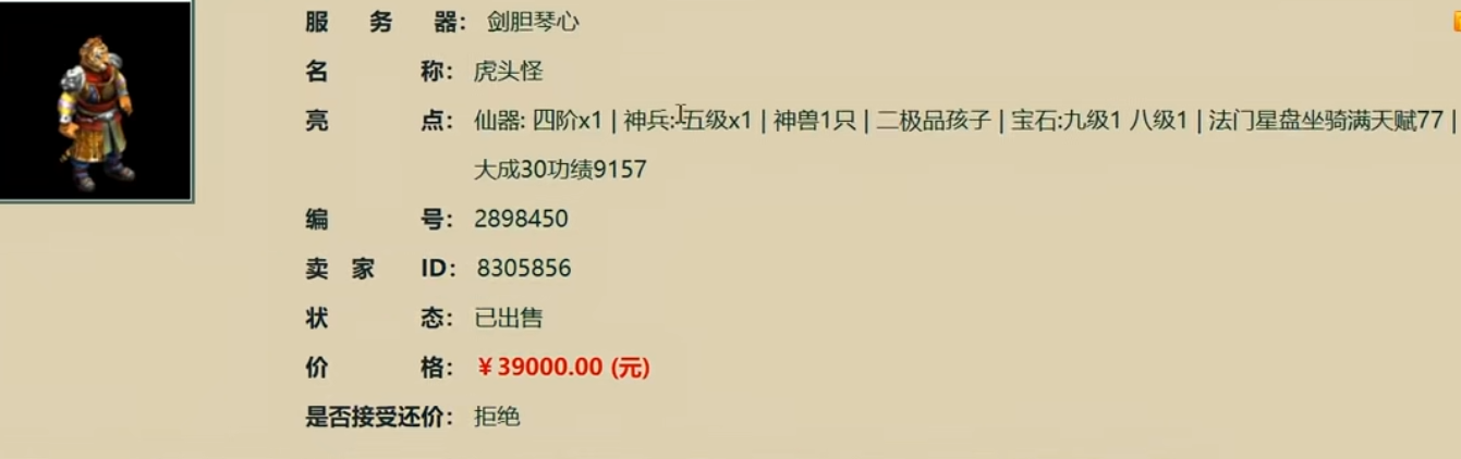 大话西游2三万九成交的大力魔!号上竟带有一只神兽