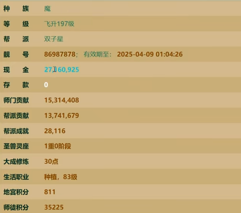 按照目前的游戏环境,3.9万成交的大话西游2男魔号应该非常一般吧?但没想到的是,这号上居然还有一只神兽?兄弟们速来看看是怎么回事? |