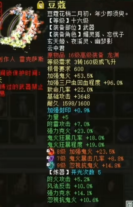 兄弟前来展示自己打造的大话西游2秒鬼,据他所说目前只是“半成品”,整体做到了强鬼火156.8、忽视抗鬼火39.1、鬼火狂暴几率93.9,克火314.5的数据,下面就来欣赏下他的装备搭配及伤害吧! |