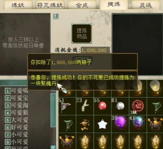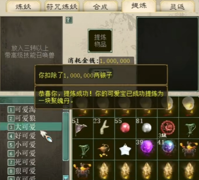 开年啦开年啦,怎么庆祝呢?当然是提炼一波大话西游2召唤兽了,来吧,小小来上十只,不为别的,就是开心! |