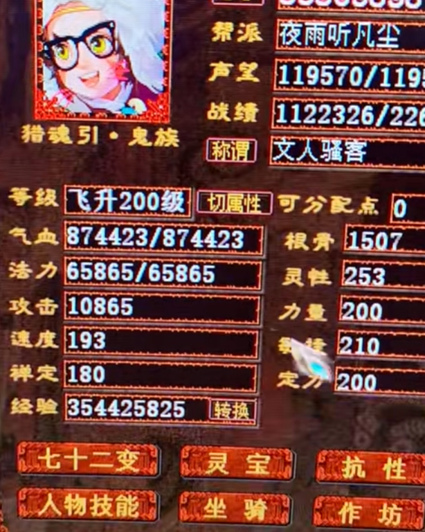 玩家展示自己刚搭配好的大话西游2躲闪鬼,主要是用来打天梯,兄弟们看看这个号能不能嗨到飞起? 将近190的躲闪率,各位老铁觉得这枚天梯躲闪鬼打造得如何? [编辑:109dowf]