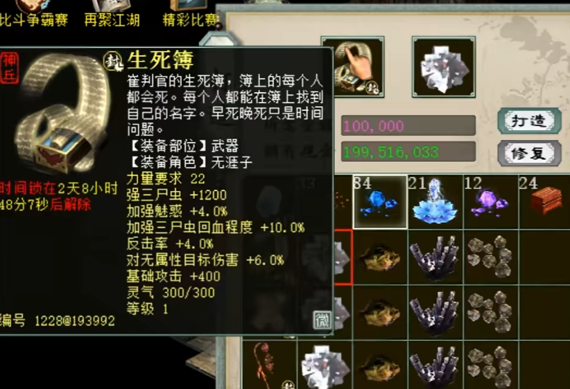 玩家准备了三把大话西游2双回武器,要求不高,能有一把上四级就行,至于结果嘛...兄弟们还是一起来见证吧!