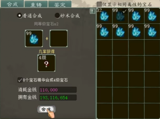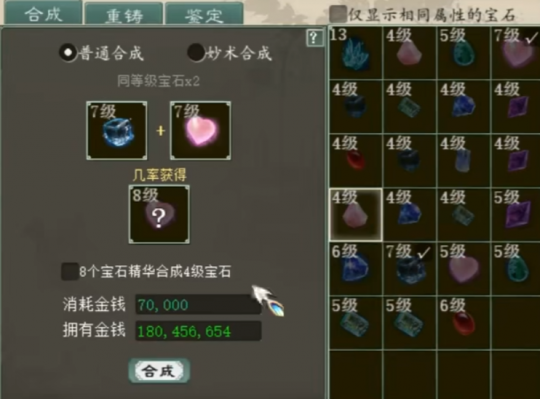 老铁买了七组多的大话西游2宝石精华,准备挑战合成一波,咱们来看下最终能冲到几级? |
