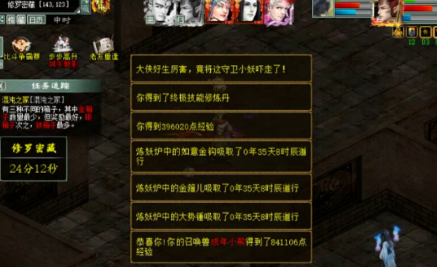 玩家秀出他狗托附体的一天,短短24小时之内,竟获得四颗大话西游2终极丹,然后提炼两只宝宝全都成功,最后还以敲出物以类聚高灵藤结束! |