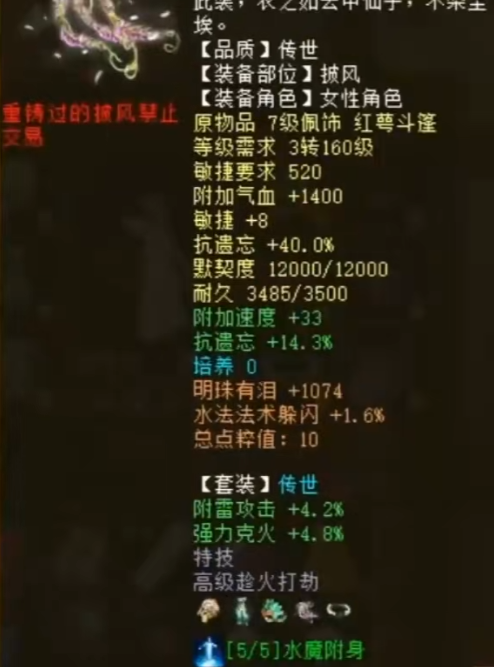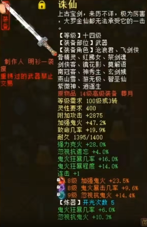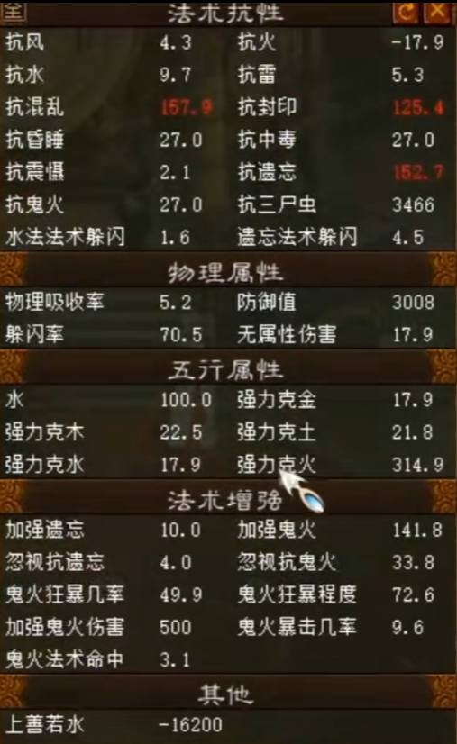 说起绝版灵性套,除了满满的情怀之外,也是鬼火一族实力的彰显!今天就给大家展示一位用14级武器的大话西游2女鬼号,克火314.9,强鬼火141.8,鬼火狂暴几率49.9,鬼火狂暴程度72.6,整体数据相当亮眼,下面直接上图! |