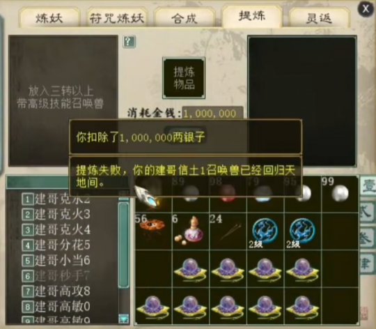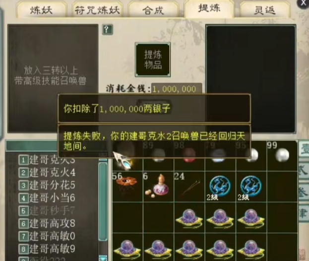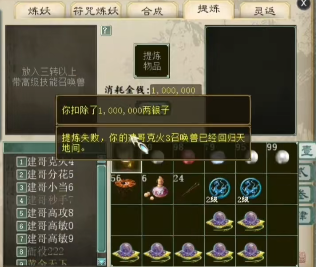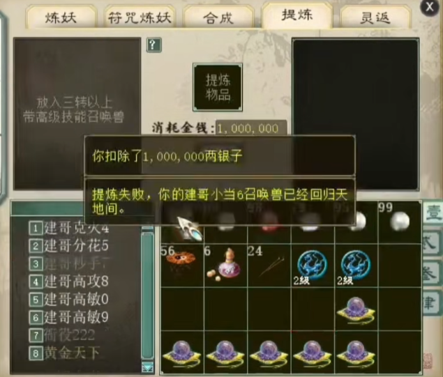 下面这位老铁,看朋友经常提炼宝宝,而且成功率相当不错,于是也准备搏一搏,提炼十只大话西游2召唤兽试试手,并且这波真的有被几率,可到底是好几率还是坏几率,那就不好说了...... |