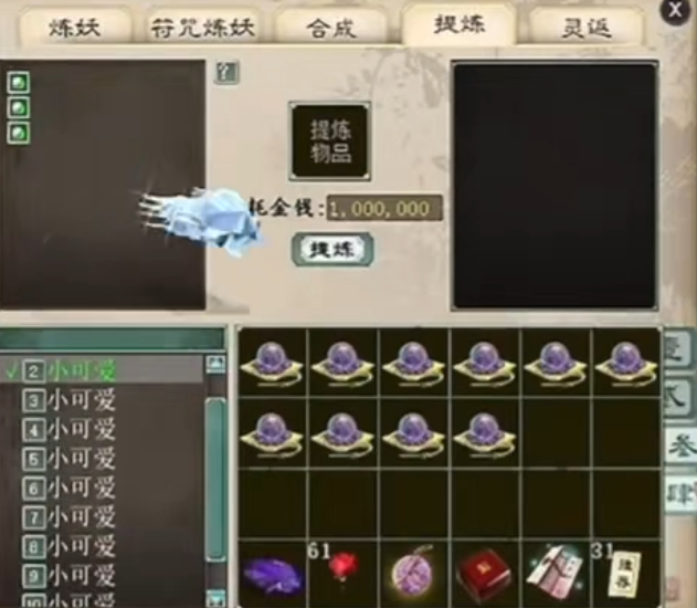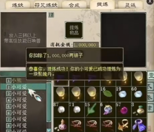 兄弟准备提炼十只大话西游2召唤兽,不同的是,这十只全都是隐身宝宝,而且名字都是“小可爱”,表哥你怎么忍心让它们消失呢? |