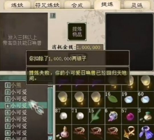 大话西游2提炼十只隐身召唤兽!全名小可爱怎忍失败