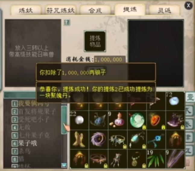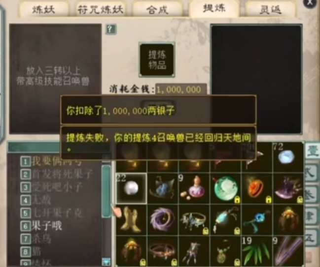 这位兄弟说,他对待宝宝的态度一直很奇怪,如果这只宝宝容易几率,那就特别喜欢;如果老是领悟不到好技能,或者开不了格子,就想给它直接提炼掉...... 今天这位老铁就来提炼整整十只大话西游2召唤兽,咱们看看有几只能够萌生“爱情”? |
