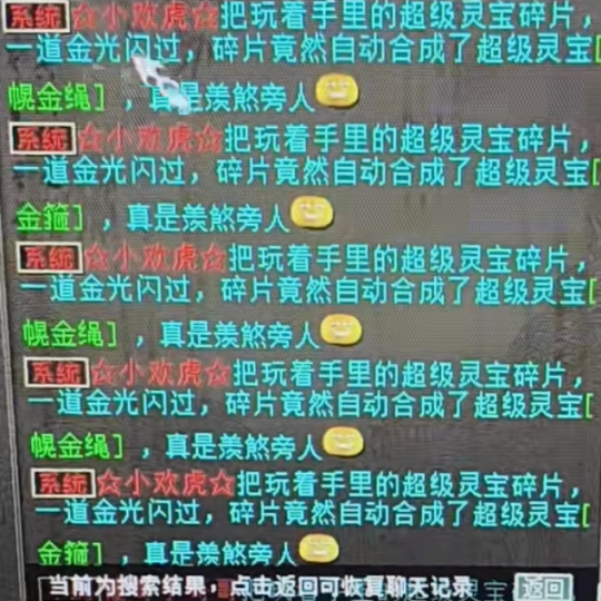 某服系统频道,忽然被一玩家刷屏?原来是小欢虎在合大话西游2超级灵宝,咱们来看看其中有没有硬货! |