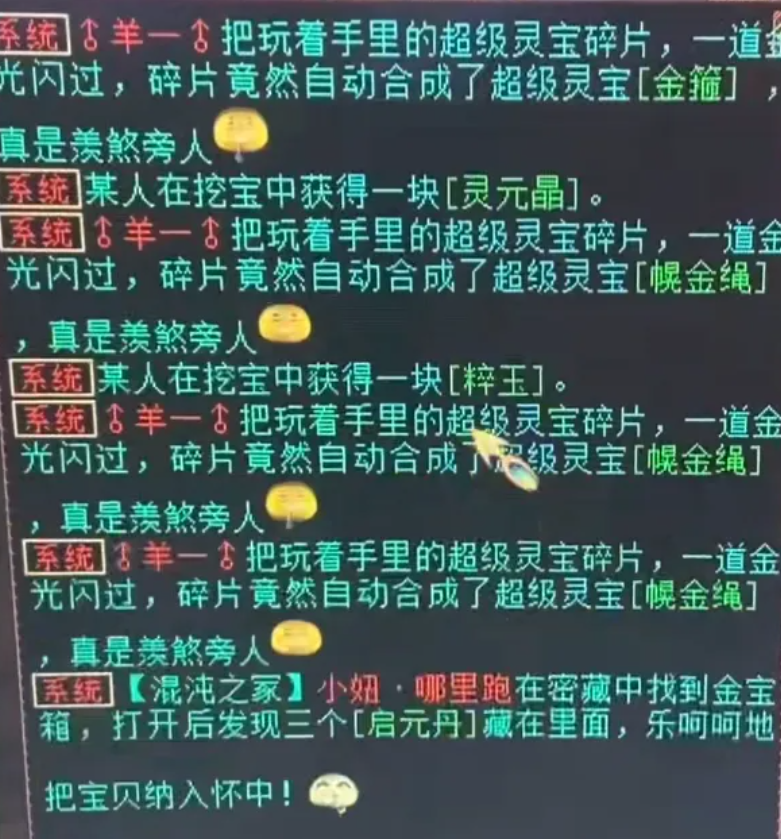 冲起来冲起来!某服系统消息,有人正在刷屏合大话西游2灵宝碎片,最后总共合了十一件之多,咱们来看看有没有值钱的类型! |
