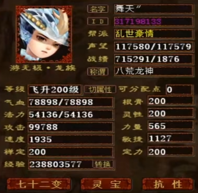 五级大话西游2神兵龙,也能做到强克400+吗?下面就来欣赏下这个龙族号的属性及装备,其伤害效果也是相当不错! |