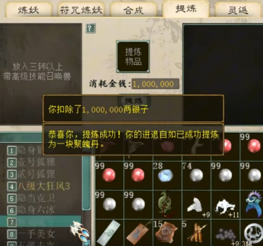 十只召唤兽,成功提炼出七颗聚魄丹,这几率有点夸张啊,基本没有比这更高的了吧? [编辑:韦小贝]