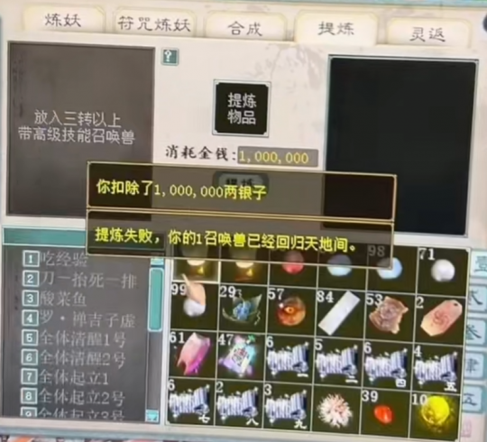 兄弟分享提炼大话西游2召唤兽的封神操作,咱们一起来欣赏下,看看最终的成功率有多少!
