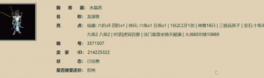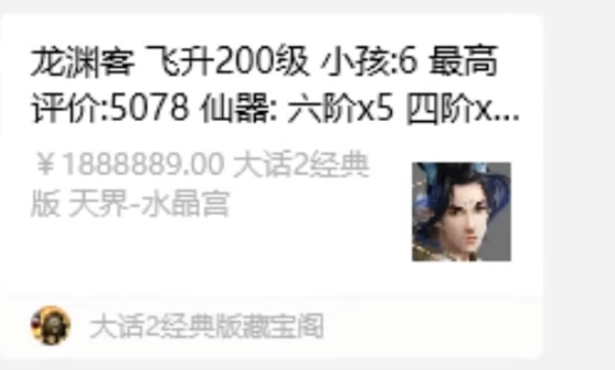 大话西游2一百八十八万已成交!回归大神购买力爆表