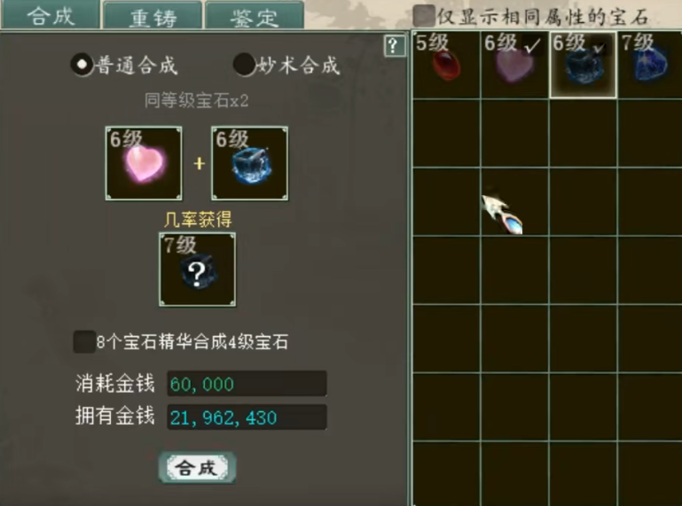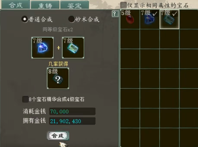 大话西游2积攒多枚师门宝石!挑战合成八级能否成功 老铁攒了几块大话西游2师门宝石,最高的就是7级了,其中付出的时间与辛苦自不必说,希望今天能成功合出八级宝石!