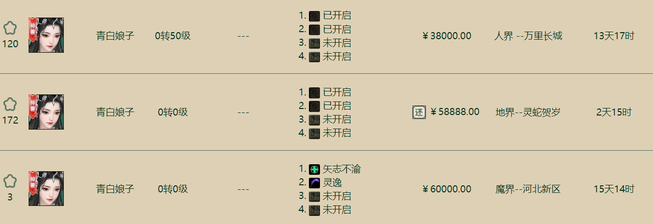 一位来自四下区的兄弟,集齐了90枚大话西游2神兽碎片,结果直接换出了四洲英华系列,速速来围观! 怀旧江湖,重回经典!大话2怀旧服火热回归中,想要冲怀旧新服的兄弟,别忘领取叶子猪专属礼包码,在游戏中激活即可获得超多道具奖励! 怀旧服至尊礼包码: DHXSMTYZZ 老友专属新服礼包(仅限2003新服): DHQYYZZ 换到一只青白娘子,这只宝宝刚刚登场不久,无论造型或技能都非常不错,这在四下区应该是大赚特赚了吧? [编辑:韦小贝]