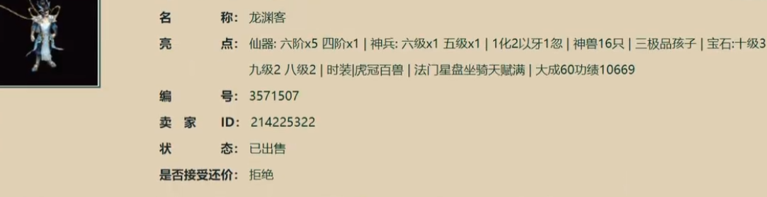 大话西游2一百八十八万成交龙号!很多人说卖太便宜