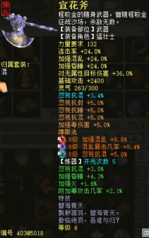今天给大家展示一位不一样的大话西游2男人号,在这个神兵成为冷门的时代,他依然选择了六级神兵武器,而且这把武器还是自己亲手炼化的,别的不说,这情调起码是拉满了! |