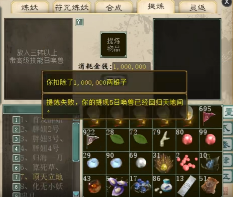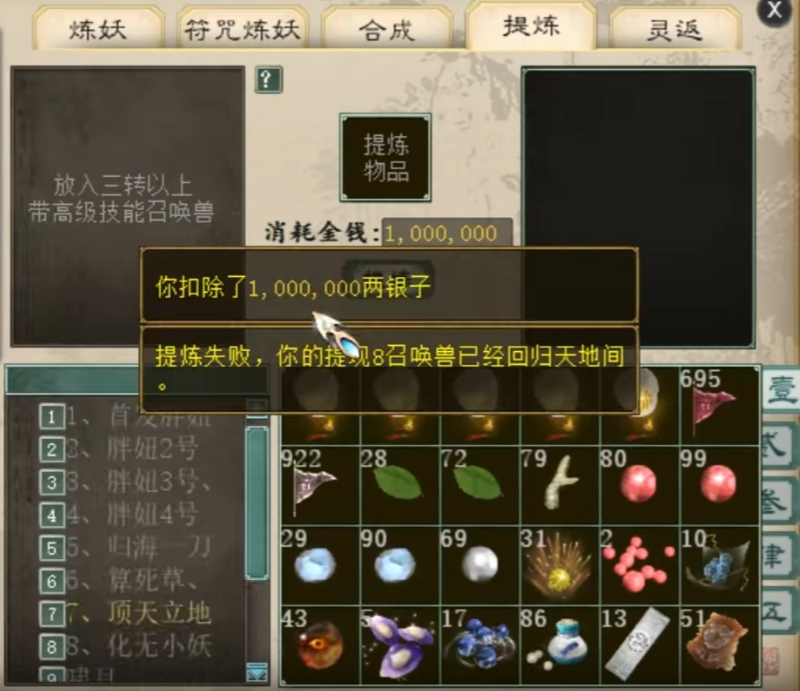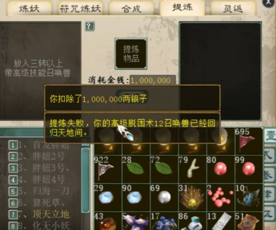大话西游2一口气提炼十只召唤兽!神出大隐纷纷成功