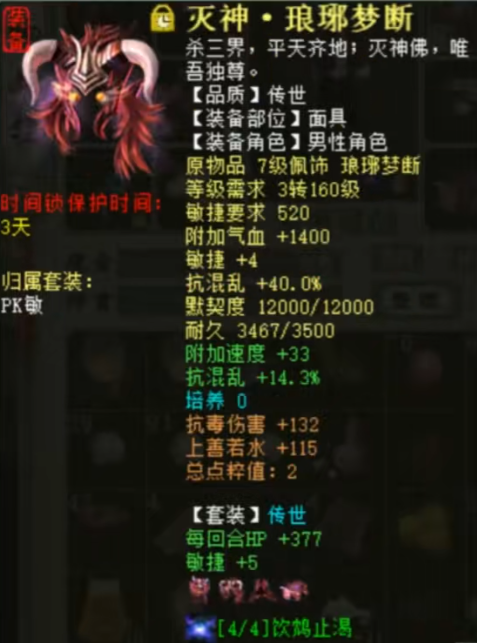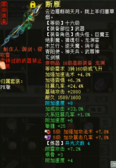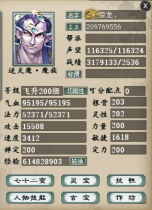今天为大家展示一位来自傲雪凌霜的大话西游2敏男魔,目前已经飞升200级,速度达到了3400之多,而他用的仅仅只是十六级武器,一起来欣赏一下! |