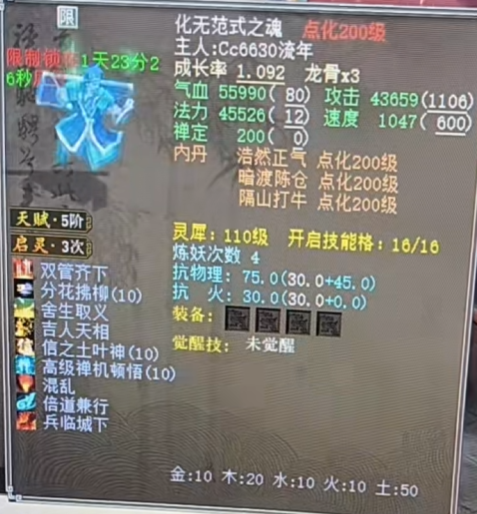 前日欢虎老板入手了一只终极大话西游2范式,到目前已经修了9手,今天也给大家分享一下修炼过程,看看是否修出了化无! 九手结束,还是没有修出化无,不知这只范式多少手才能毕业,希望大佬下次一把成功! [编辑:cmieg]