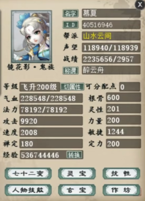 专干十六星,其余日常全扫!今天来欣赏一位六阶大话西游2女鬼,遗忘数据做到了忽视43、强71.2,抗性也非常不错,咱们一起来欣赏下吧! |