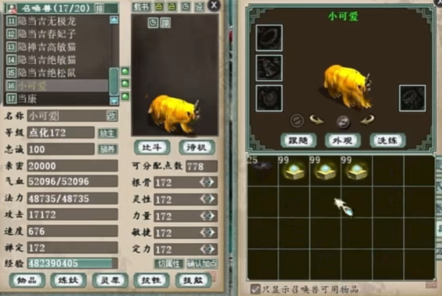 大话西游2同修两只问号召唤兽!哪只能修出化无终极