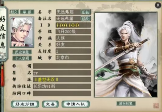 近日传出无远弗届归隐的消息后,这位顶尖男人的物资也随之曝光,最为大话西游2巅峰战队的主力,这个号非常非常之养眼,兄弟们一起来欣赏吧! (请原谅小编的诺基亚手机,实在是在对不住,觉得图片太模糊的话,兄弟们就尽情开骂吧#83) |