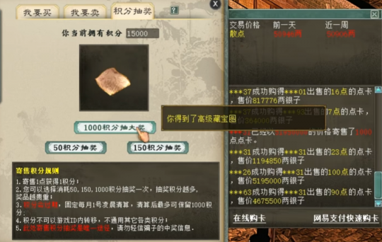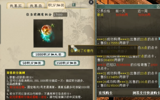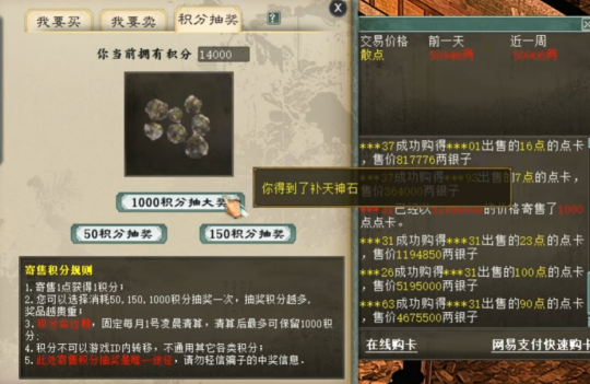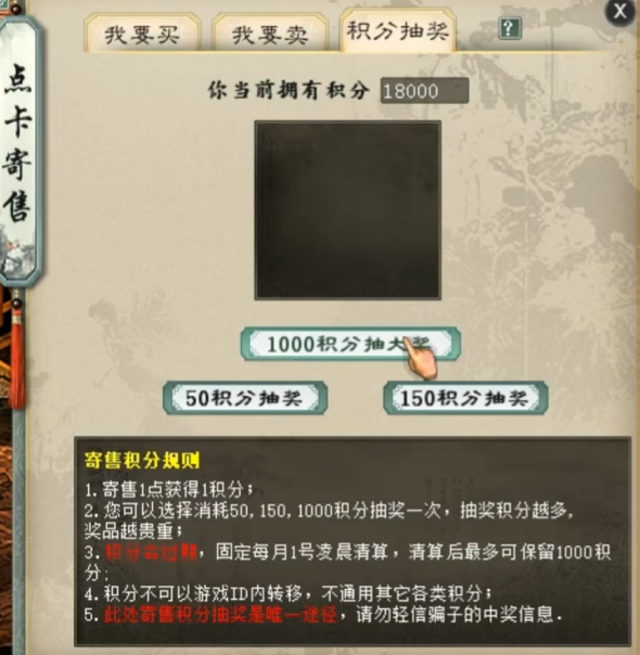 大话西游2点卡积分抽奖来了!根据老传统,应该是每晚刚过十二点容易出好东西,但江湖之大,总有不信邪的猛人,今天这位玩家就准备中午来抽奖,看看都能抽出什么? |