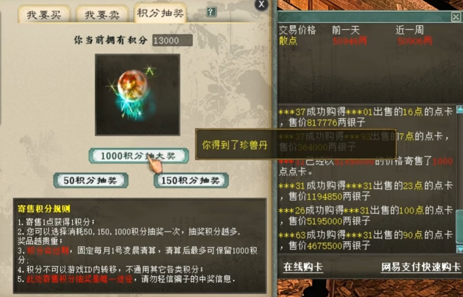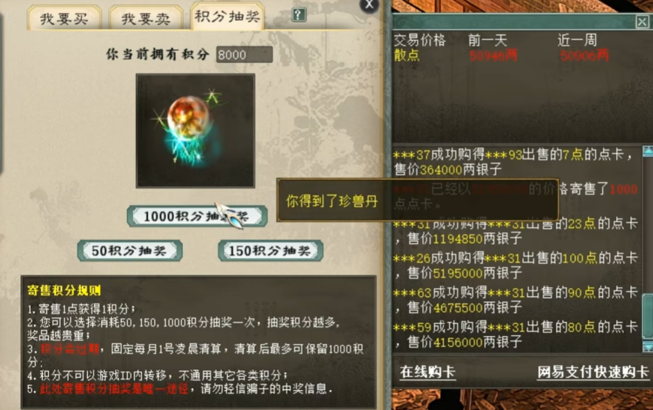 大话西游2近两万点卡积分开抽!能如愿以偿出神兽吗