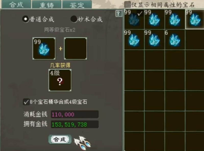 开合六组大话西游2宝石精华!其他大佬都是十组、二十组合成,这次的六组又能合到几级呢?有人说能合到七级就不错了,那就来看看最终结果吧! |