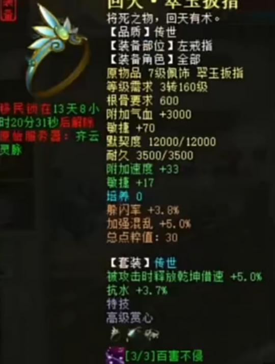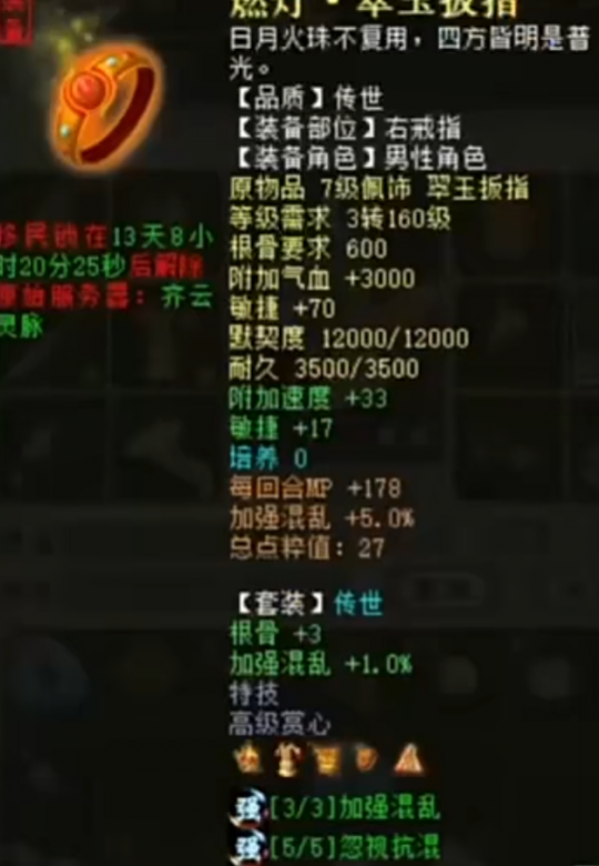 镶两颗9级宝石的6阶蓝字混0.9衣服