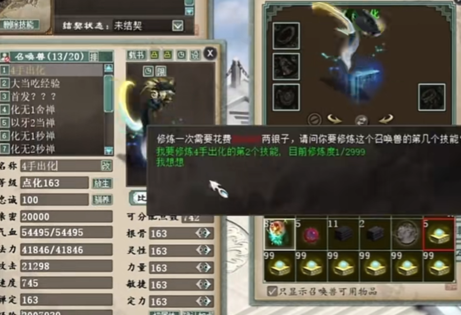 踏歌连修两只问号大话西游2召唤兽,一只问号风熊,一只问号啸月,来看看哪只能修出化无? 真的修出化无了,一手修出化无风熊!看看谁还说这位大佬的手气不行#89 [编辑:zmjde]