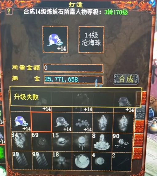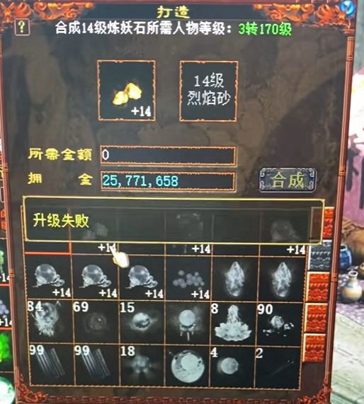 自从15级炼妖出来后,老铁们真是冲得飞起啊,今天这位兄弟也准备尝试下,他准备了几块14级大话西游2炼妖石,咱们看看冲15几率如何! 这成功率也太低了吧#24不敢想象15炼妖石得多贵! [编辑:mxjif]